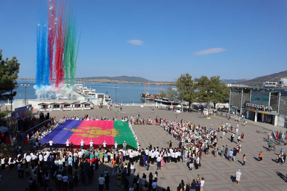 Сегодня утром на Центральной площади прошло праздничное представление, посвященное 86-ой годовщине со Дня образования Краснодарского края и 231 годовщины со дня высадки на Таманский полуостров черноморских казаков.