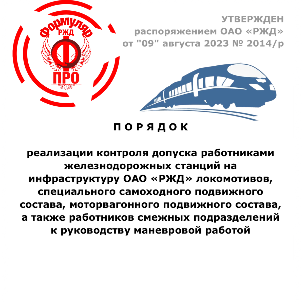 Пожалуйста, обратите внимание, что распоряжением №2014/р от 09.08.2023 введен новый порядок контроля допуска ССПС на инфраструктуру ОАО "РЖД." Кроме этого, этим же распоряжением внесены изменения в "Положение" №1852р от 11.09.2017г. о допуске локомотивов на инфраструктуру.