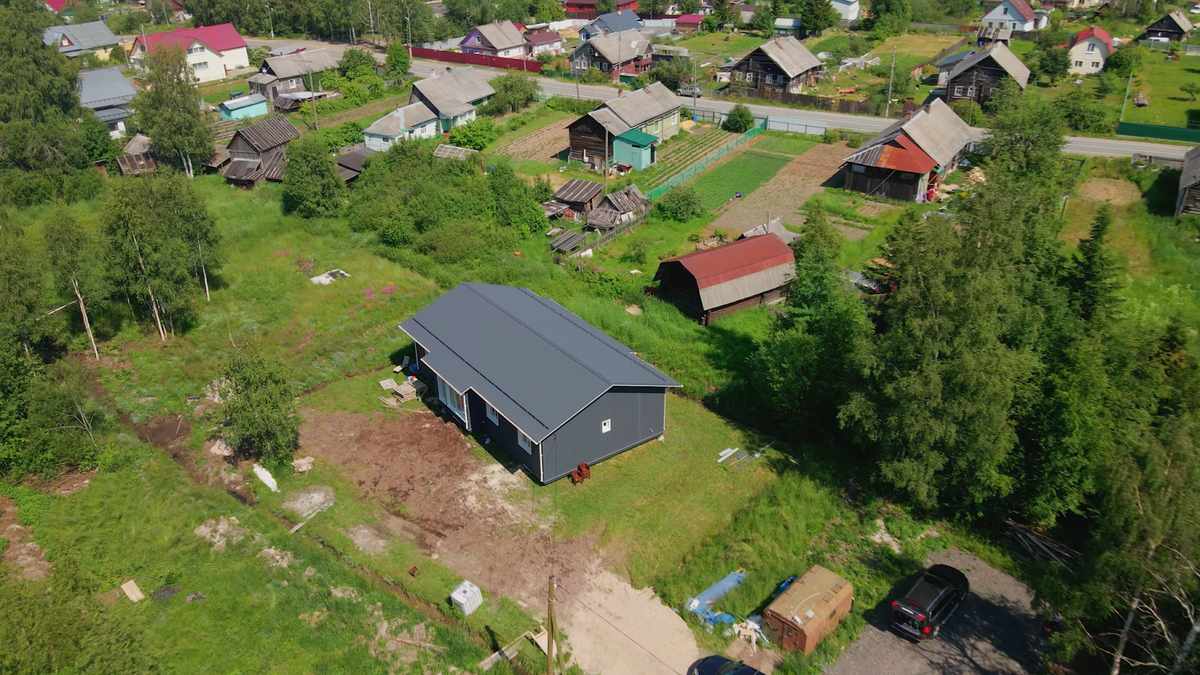 В августе успешно завершился благотворительный проект по строительству в Карелии дома для многодетной семьи. Проект инициировал Сергей Петруша, автор канала «Стройхлам», к которому присоединились подписчики, блогеры и несколько компаний из строительной отрасли. О том, как вышло, что семья Антона Герасимова осталась без жилья, и о ходе строительства дома можно узнать из ролика на канале Сергея, ниже дадим ссылку на него. А в статье немного расскажем о конструктиве дома и подробно об одной из сложнейших задач, с которой пришлось столкнуться при строительстве — о возведении фундамента. Площадь дома — 136 кв. метров. В нем проходная кухня-гостиная и 4 спальни, как и нужно было большой семье Сергея. Каркас дома выполнен из ЛСТК (легких стальных тонкостенных конструкций) и заполнен пенобетоном. Из ЛСТК построена и стропильная система. Облицован дом металлическим сайдингом. Крыша — двускатная с фальцевой кровлей. Основная сложность для возведения фундамента заключалась в том, что на участке