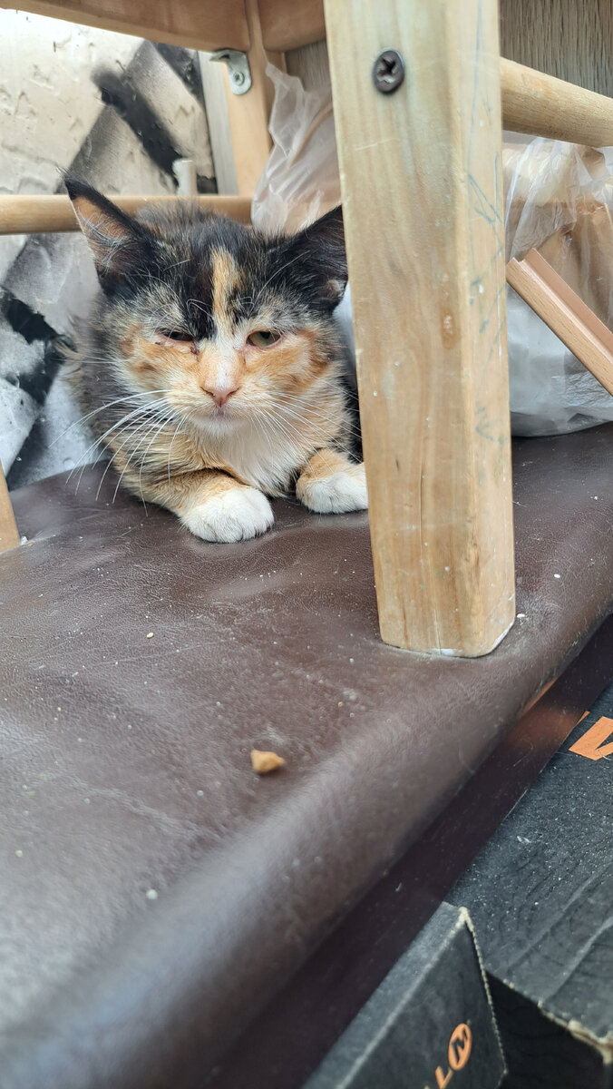 Уличная кошечка или котик, черепашьего окраса покорила нас с первого взгляда. Неприступная, на руки не идёт, но есть в ней что-то царское. В нашей семье любят независимых. Старшая кошка тоже с улицы, и спустя 11 лет только она может решать когда её гладить, а когда нет. Прошло две ночи, как мы забрали котёнка домой. Карантин на балконе продолжается. Вчера получила ещё один укус, но небольшой. Кушает и ходит в туалет по ночам. Сегодня даже пописала в лоток, а вот со вторым никак не определиться.. Имя, с детьми ещё, не придумали, так как не уверены кот или кошка. При этом есть мнение, что черепашьего окраса бывают только кошки. Сегодня, когда дети ушли в школу, почесала малышку за ушком. Глаза конечно были испуганны, но обошлось без шипения и укусов. Знаю, что многие люди не одобряют того, чтобы брать животных с улицы. Лучше приученных к лотку, ласковых и маленьких. Я немного другого мнения. Так как нам в деревне постоянно подкидывали котят и собак и мама никогда никого не выбросила. К