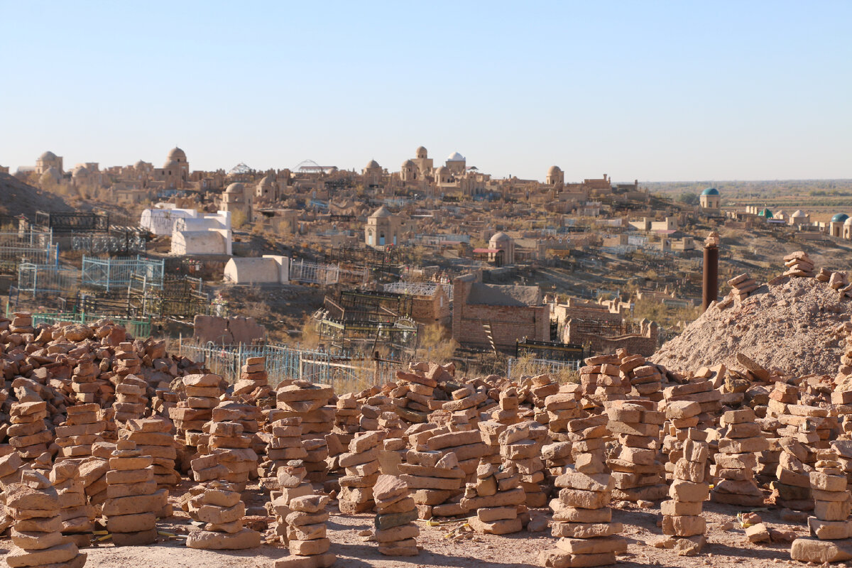 Местные верят, что здесь был похоронен первый человек, и складывают маленькие башенки из бессчётных обломков разрушенных надгробий, а почитаемые мёртвые в мавзолеях, как это принято в Средней Азии, всё увеличиваются с годами (вместе с саркофагами).