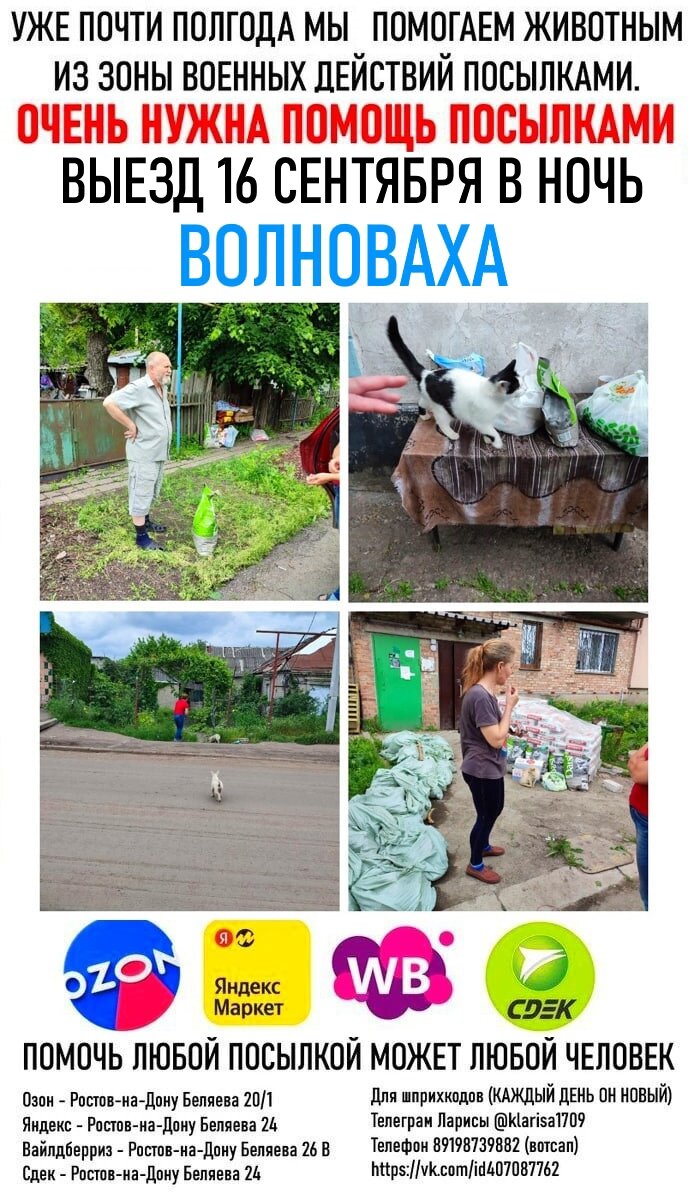 Ребята, в 16 сентября в ночь Лариса @klarisa1709 опять едет раздавать корма для животных. Едет в Волноваху. Предлагаю заказать корма, собачьего и кошачьего, кто столько захочет. Я как всегда начну