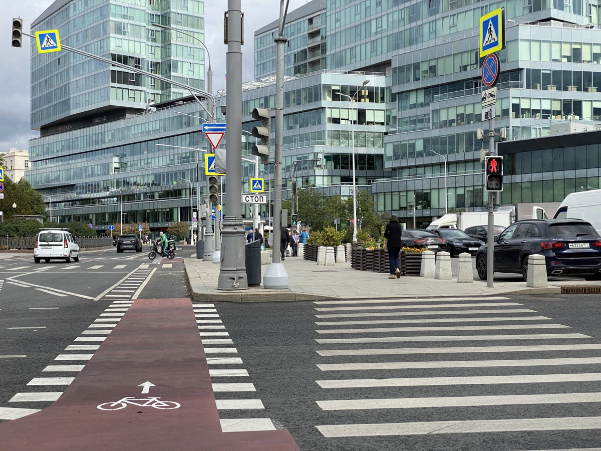 Смысл дорожного регулирования — предупреждать ДТП и сводить к минимум риски, которые возникают из-за ошибок участников дорожного движения. Чтобы люди соблюдали правила, эти правила должны быть логичными и интуитивно понятными. Тут этим и не пахнет. Человек на велосипеде в рамках одного перекрестка должен руководствоваться светофорными фазами для велосипедов, пешеходов и автмобилей. А в некоторых случаях — оперативно принимать решения на свой страх и риск. При этом ГИБДД и ЦОДД наверняка скажут, что тут все по ГОСТам — что-то, а снимать с себя ответственность эти ребята умеют.