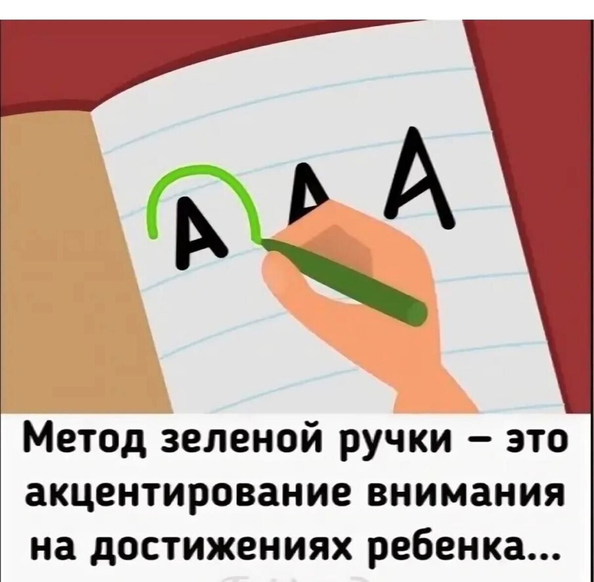 Недавно наткнулась в сети на некий "метод зелёной ручки". Думаю, многие уже с этим знакомы, а кто нет, приглашаю вас к прочтению данной статьи. Метод, кстати, был придуман ни экспертом, ни психологом или педагогом, а мамой, такой же как вы и я. Всё это началось с того, как она, в процессе проверки прописей дочери, взяла зеленую ручку и начала обводить ею все красиво написанные буквы, нахваливая ребёнка за эти хоть и небольшие, но дотижения. Мы привыкли, что в школах красной ручкой преподаватели настолько ярко обводили всё неправильное и корявое, что в тетради и прописи аж заглядывать порой было страшно. Но здесь женщина пошла совершенно другим путём. "Где внимание, там и рост", говорят психологи, и мама выбрала именно этот способ. Акцентируя внимание ребёнка на положительных моментах, можно добиться таких результатов, о которых вы даже не думали. И наоборот, если каждый раз показывать ребенку насколько он бестолковый и на самом деле ничего не знает, хочешь не хочешь, он таким