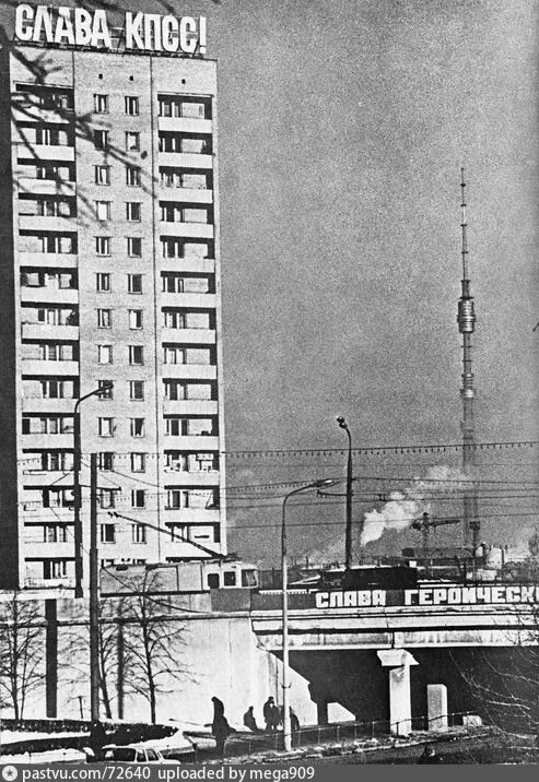 — Наш дом! — воскликнул Стас, указывая на здание, открывшееся в окне тролика. Это отнюдь не означало, что в нём жили друзья. Зато на крыше красовались огромные буквы: “СЛАВА кпсс”. Именно так виделись они Славке, хотя буквы “КПСС” не уступали своими размерами “СЛАВЕ”.