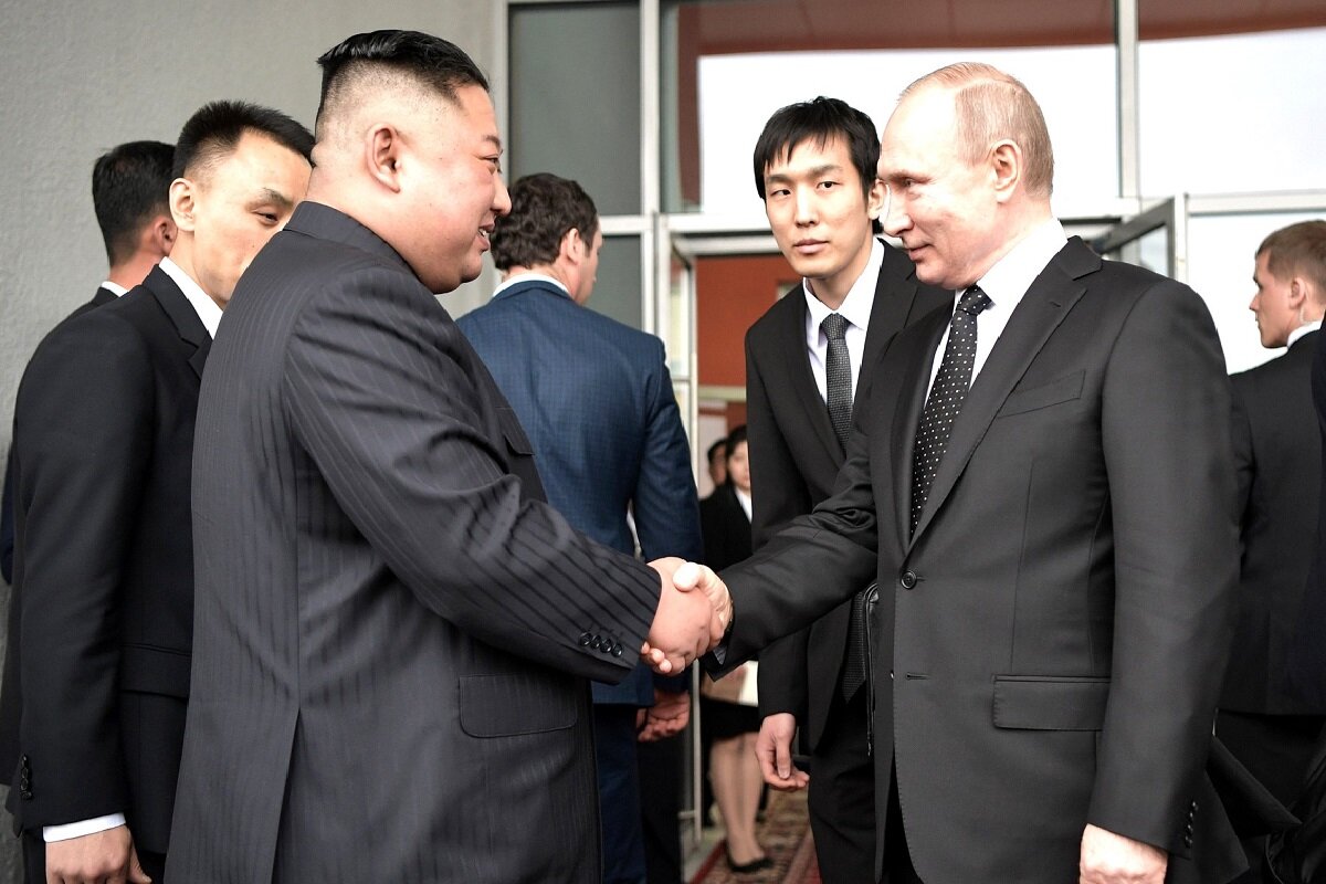 Лидер КНДР поблагодарил российского коллегу за приглашение и теплый прием. Президент РФ Владимир Путин встретился с главой Северной Кореи Ким Чен Ыном на космодроме Восточный в Амурской области. Поезд Ким Чен Ына подъехал к монтажно-испытательному корпусу. Там лидер КНДР пересел в свой лимузин. Путин прилетел из Приморья — с Восточного экономического форума. Ким Чен Ын поблагодарил российского коллегу за приглашение и теплый прием. «Очень рад вас видеть, тем более, что такие события были: 75 лет образования республики, 70-летие победы в Великой войне за освобождение, 75 лет установления дипотношений», — цитирует президента РФ ТАСС. Ранее сообщалось, что Ким Чен Ына в России встретили с красной дорожкой.
