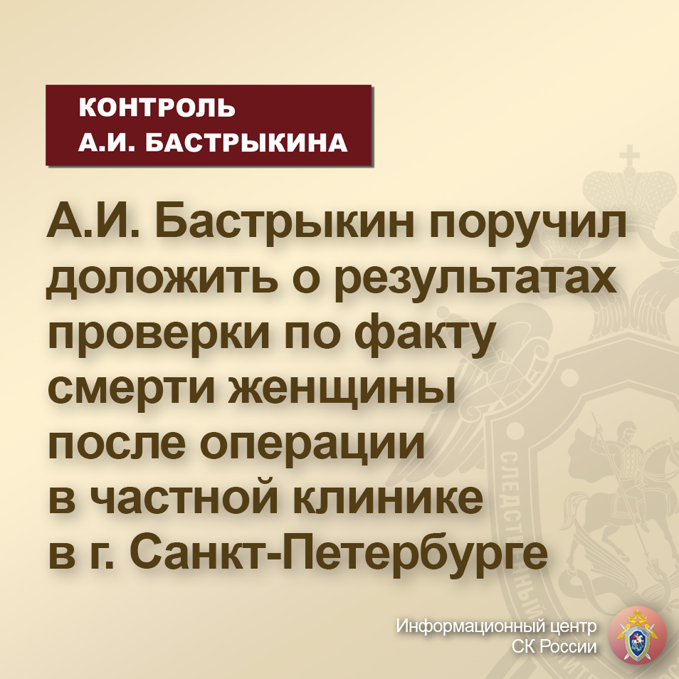 Председатель Следственного комитета Российской Федерации Александр Иванович Бастрыкин поручил и.о. руководителя ГСУ СК России по городу Санкт-Петербургу Олегу Валерьевичу Бобкову представить доклад о промежуточных результатах процессуальной проверки и принятом по ее итогам процессуальном решении.