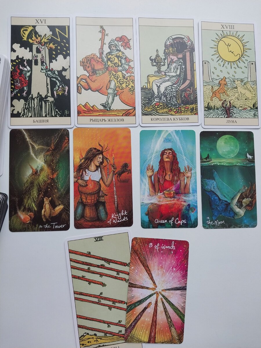Чувства вашего мужчине к вам - карта Башня. В его голове, в его сердце все разрушено. Все идет не так, не по плану. Разрушается привычный образ жизни и привычное общение. Либо что-то пошло не так, либо ваши отношения развиваются не так, как он хотел, как он себе представлял. При самом плохом раскладе произошло нечто ужасное для мужчины, полное разочарование в вас, возможно, из-за какого-то вашего проступка. Это может быть даже измена. То есть мужчина разбит, раздавлен, разочарован, разрушено его отношение к вам.💔 Вторая карта - Рыцарь жезлов. Что мужчина планирует предпринять в этих отношениях. Несмотря на то, что сейчас чувства мужчины в полном раздрае, он в смятении, все же он принял решение действовать. Он понял, что вы нужны ему, очень важны для него. Если ваши отношения были разрушены по его вине, то он спешит все исправить. Он настроен действовать активно, быть победителем, добиться вашего расположения, все исправить. Он спешит к вам, если вы сейчас находитесь на расстоянии