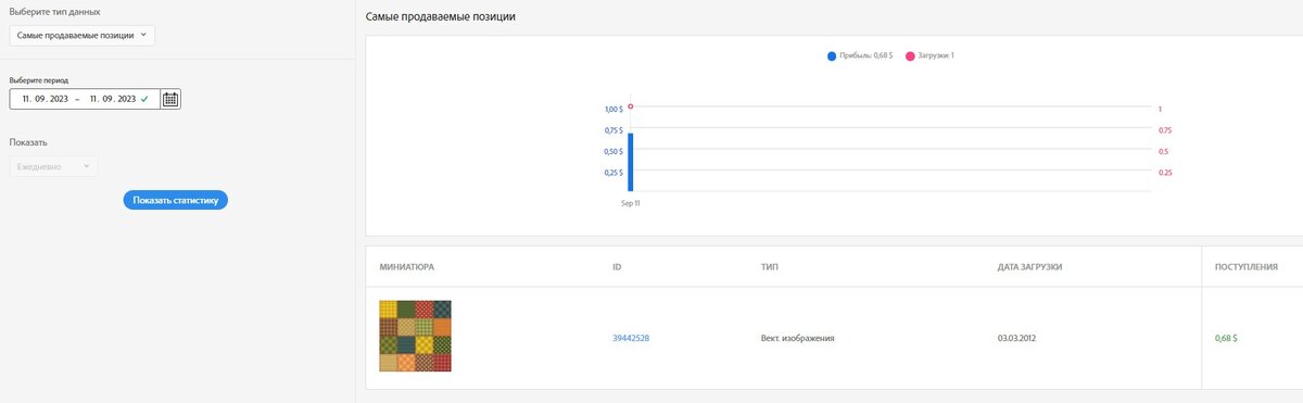 Сегодня при "обходе" площадок, с которыми я сотрудничаю, я подпрыгнула на стуле от радости. На счете в Adobestock я увидела 87 долларов! До вчерашнего дня там было то ли 13, то ли 14 долларов, точно не помню. Потирая руки, пошла смотреть, что же у меня купили за такую хорошую цену. И тут меня ждало удивление. Ничего. Ничего не купили! Деньги капнули сегодня, но отображаются за 11.09.2023. Но в статистике за 11.09 их НЕТ! Приход 11.09, зачисление 13.09, а продаж на эту сумму - нет! Продажи за 11.09: Продажи за 13.09: Поступления за 13.09 (не продажи): Но поступления есть, в статистике отражено, на счете - тоже. Значит, денежки мои. ) Отправила на вывод. Продажи тоже по чуть-чуть капают. Но с этим поступлением не сравнить, конечно. Эх, жаль, что курс вывода далек от официального. Посмотрела в обменнике - 82 рубля за доллар. Но тоже неплохо. Лучше, чем ничего. ) Уже после вывода продалось что-то на 2 доллара. Знала бы, подождала бы. Чем больше выводишь, тем выгоднее. ) Но не