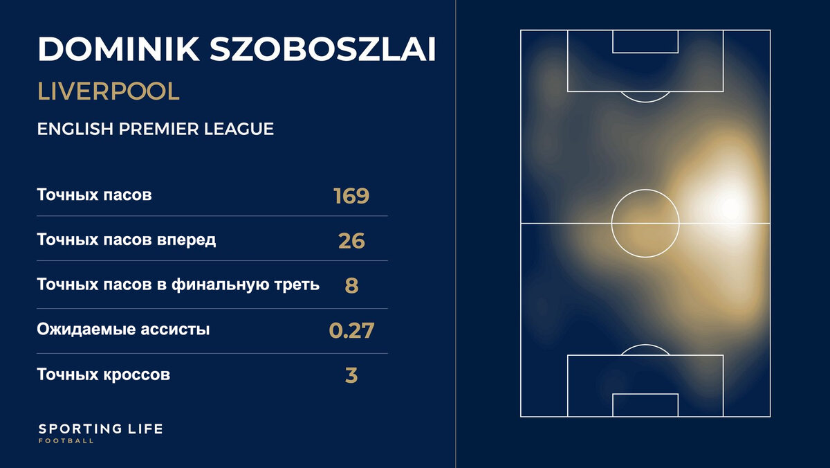 Собослаи также создал два момента, выполнил 91% своих передач, семь раз отбирал мяч и участвовал в семи дуэлях, завершая тем самым потрясающее всестороннее выступление.