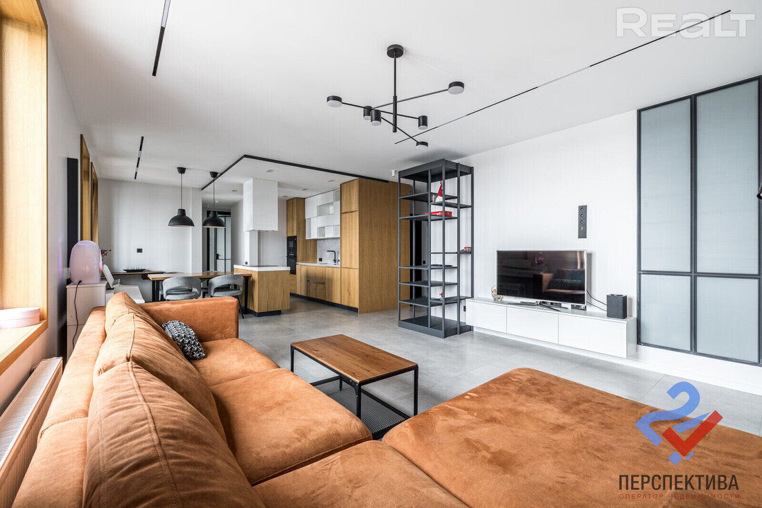 Вчера мы нашли самую дешевую квартиру с ремонтом в Новой Боровой, а сегодня покажем самую дорогую. В евротрешке сделан дизайнерский ремонт, уже установлена техника и мебель. Квартира стоит 350 тысяч долларов. Посмотрите, как она выглядит. Квартира находится на предпоследнем этаже 23-этажного дома 2019 года постройки на Братьев Райт, 1. Общая площадь евротрешки - 122,2 м², жилая - 70 "квадратов". В квартире совмещенная кухня-гостиная. Стены в евротрешке выровнены и окрашены в светлые тона. В кухонной зоне имеется остров и обеденная группа Jackwood. Мойка сделана из искусственного камня, установлена встроенная бытовая техника: варочная поверхность, посудомоечная машина, духовой шкаф, микроволновая печь, холодильник и вытяжка. В гостиной стоит диван MODO, встроенный шкаф, декоративная стойка Jackwood, есть светильники. Также тут есть выход на застекленную лоджию, которая идет на на всю длину гостиной. Хозяйская спальня спроектирована отдельным блоком. Там есть свой санузел и гардеробная,