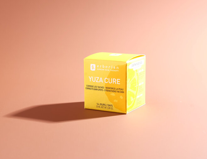 Из информации производителя следует, что основной эффект достигается благодаря входящим в состав трём экстрактам Юзу: экстракта ферментированного Юзу, полученного из цедры и мякоти юзу; водного экстракта, полученного из цедры и мякоти путём паровой дистилляции; масла Юзу, полученного из семян юзу и богатого жирными кислотами (Омега-9 и Омега-6). Помимо этого в составе заявлены ниацинамид, гексилрезорцин, сквалан, экстракт морского нарцисса.