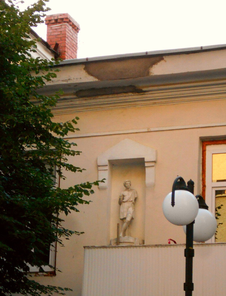 Статуи Адониса на балконах старинного дома в Каменец-Подольском