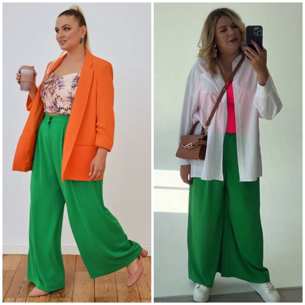 Здравствуйте, дорогие читатели! Меня зовут Марина, я - стилист PLUS SIZE, и на этом канале показываю одежду и аксессуары с Wildberries такими, как они есть, то есть, из серии "ожидание/реальность". Мои параметры: рост 170 см, вес 95 кг, 110-92-118 ✅Основной канал: Стилист PLUS SIZE Ставьте лайк в поддержку канала, и давайте смотреть на мою сегодняшнюю покупку. Недавно купила себе новые яркие брюки палаццо и спешу поделиться наводкой с вами. Сразу предупрежу, что это линейка больших размеров (от 52 до 60). Брюки свободные, очень комфортные, клеш идет от бедра. Очень красивый, насыщенный зеленый цвет! Такие брюки вы сможете носить и на деловые встречи, и просто в повседневной жизни, что, собственно, мы и демонстрируем с моделью на фото. У брюк на талии мягкая резинка, которая не давит на живот и обеспечивает идеальную посадку по фигуре. Также есть защипы, которые визуально корректируют фигуру. По бокам имеются карманы. Я очень довольна покупкой! Видео-обзор: Если вам нужен артикул брюк,