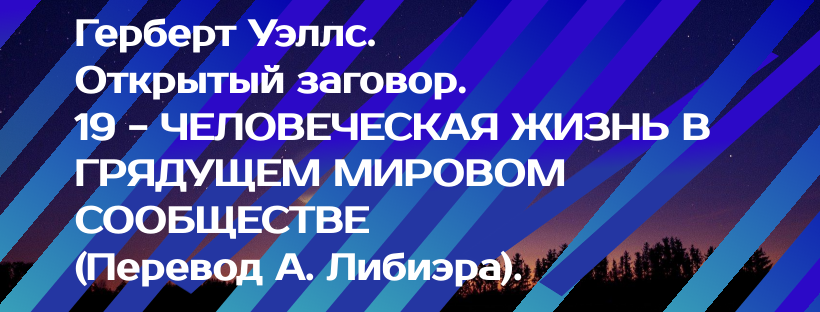 Герберт Уэллс. Открытый заговор. 19 - ЧЕЛОВЕЧЕСКАЯ ЖИЗНЬ В ГРЯДУЩЕМ МИРОВОМ СООБЩЕСТВЕ (Перевод А. Либиэра).