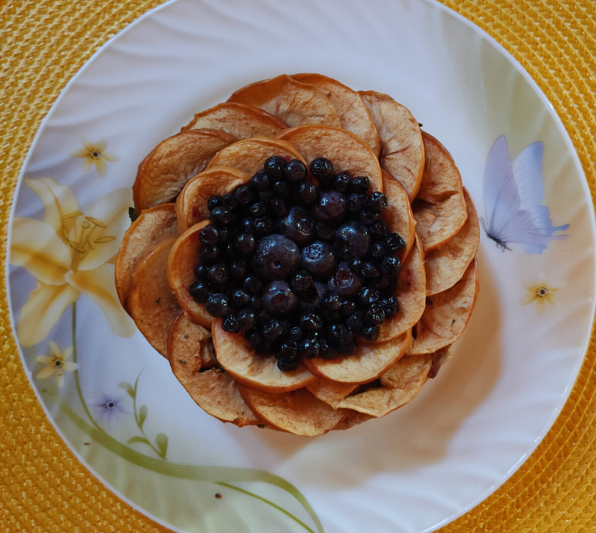 Приветствую вас! Дорогие друзья, я приняла решение приостановить работу канала. Будет это временно или нет, точно сказать не могу, но на пару месяцев я точно пропаду). И чтобы немного подсластить горечь расставания, хочу сегодня показать мой ПП вариант французского яблочного пирога, который называют "невидимка", в нем практически нет теста, да и оно при выпечке превращается в нежный ванильный крем. Ингредиенты: 8 некрупных сладких яблок (2 шт ушли на декор верха), 1 яйцо, 30 г пшенной муки, 10 г миндальной муки, 60 мл сливок 10% (в аутентичном рецепте смешивают молоко и растопленное сливочное масло - 50 мл на 15 г масла), 1/2 ч.л разрыхлителя, 1 пакетик ванилина, корица, сушёная мята. Черника и голубика для декора. Подсластитель я не использовала, мне было достаточно сладости яблок. Форма для запекания была диаметром 15 см и высотой 4,5 см. Яйцо взбить, добавить муку, ванилин, сливки, разрыхлитель, корицу, измельчённую мяту, чуть соли. 6 яблок очистить от кожуры и сердцевины, нарезат