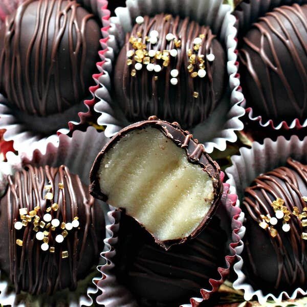 Вкус у конфет тоже потрясающий. Марципан, пластичная сладкая глина, сделанная из миндаля и сахара, сам по себе является изысканным лакомством, а, покрыв ее шоколадом, вы поучите по-настоящему особенные лакомства.