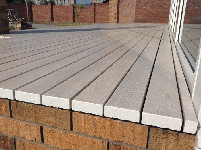 Краску наносят в 2 слоя параллельно направлению досок. Второй слой наносят только после полного высыхания предыдущего.