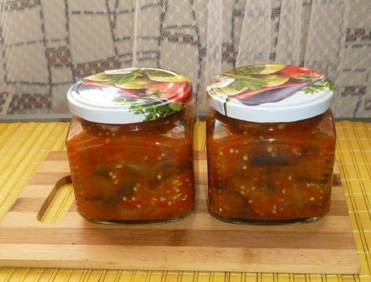 Здравствуйте, дорогие мои! Сегодня про синенькие, они же баклажаны. Несложный рецепт заготовки на зиму. Можно эту закуску сделать острой, ну а если острое не любите или вдруг нельзя, так нет ничего проще - горький перец можно не добавлять. Основная роль тут у перца болгарского. Начинаем с обычной процедуры - хорошо моем овощи. Баклажаны нарезаем таким кусочками, чтобы есть было удобно, но и не совсем мелко. Посыпаем солью и даем постоять, избавляемся от специфической горечи этого овоща. Перец чисти и нарезаем, неважно как. потому что потом измельчаем его в "кашицу", тут и болгарский перец, и острый. Подготавливаем чеснок, его тоже потом нарезаем помельче. В кастрюлю выкладываем перец и чеснок, добавляем соль, сахар и растительное масло. Ставим кастрюлю на огонь. Баклажаны промываем от соли и в кипящей воде варим несколько минут. Перекладываем на дуршлаг, чтобы обтекла вода. Когда перец закипит, выкладываем подготовленные синенькие. Ждем, пока закипит, добавляем уксус и варим пять-сем