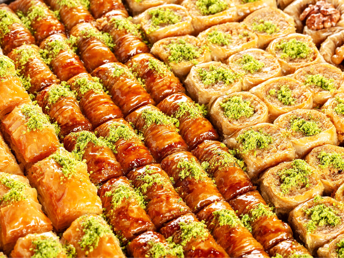 Пахлава - это восточное сладкое блюдо из слоеного теста, которое часто украшается орехами и поливается сиропом. Вот интересные факты и происхождение пахлавы: Происхождение Пахлава считается традиционным восточным сладким блюдом и имеет долгую историю, связанную с многими странами на Ближнем Востоке и в Средиземном море, такими как Турция, Греция, Армения, Иран и другими. История История пахлавы сильно связана с древнеримской кухней. Абхазская пахлава считается одной из старейших и наиболее известных пахлав в мире. Разнообразие Существуют различные вариации пахлавы в разных культурах. Например, турецкая пахлава, известная как "баклава", часто приготавливается с лепешками из фило-теста, маслом и фаршем из орехов. Ингредиенты В основе пахлавы лежит слоеное тесто, составленное из нескольких тонких слоев теста, а также различные виды орехов, такие как грецкий орех, миндаль или фисташки. Тесто обычно наслоено с маслом или сливочным маслом. Сироп Пахлава часто поливается сладким сиропом, с