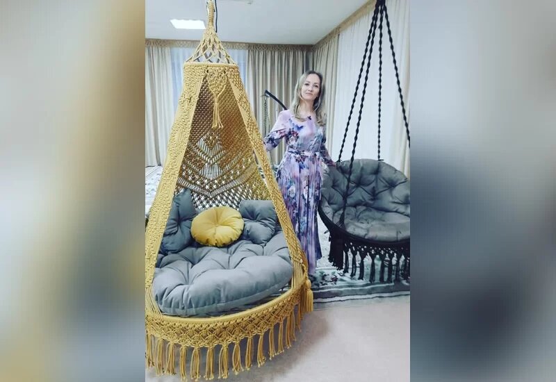 Гамаки, качели, шатры, подвесные колыбели. Нижнекамка Гузель Валеева плетет вещи в технике макраме. «Когда их создаю, я думаю о хорошем, стараюсь через изделия передать счастье, я вплетаю свою любовь», – признается девушка. Гузель работает воспитателем в детском саду. Техникой узелкового плетения занимается всего год, но среди ценителей изделий ручной работы ее уже пользуются популярностью. Секрет своего успеха мастерица рассказала корреспонденту «Нижнекамской правды». – Гузель, и первый вопрос – с чего все началось? – С детства. Мама научила меня вязать, когда я еще в школе училась. В прошлом году мы начали строить дом. Однажды мне в интернете попались на глаза уроки по плетению различных вещей для дома. Тогда я и загорелась идеей сплести гамак. Смотрела онлайн-уроки и по ним училась. Я думаю, так сможет каждый, было бы желание. – Какие нужны материалы, чтобы сделать такой гамак? – Нужен специальный шнур для плетения макраме, который не будет тянуться и сохранит свою форму. Для создан