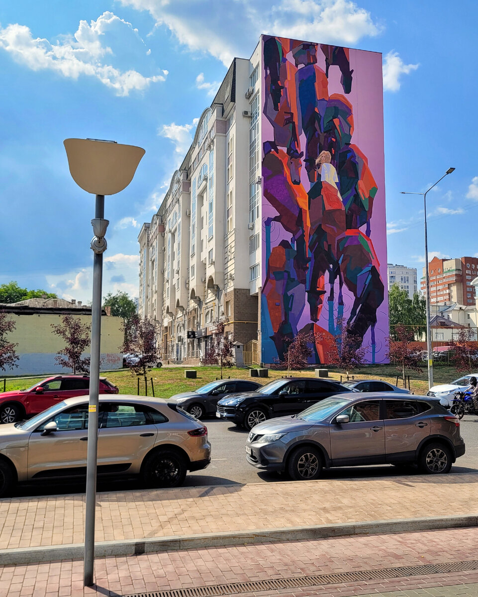 Именно он стал первым и самым ярким впечатлением от этого города. Да, поездку по Башкирии закончили в её столице. И гуляя, повсюду натыкались на муралы и граффити. Мы их не искали — они сами находились. Выглядывали из-за деревьев, домов, поворотов. Только успевай смотреть, оглядываться, фоткать.