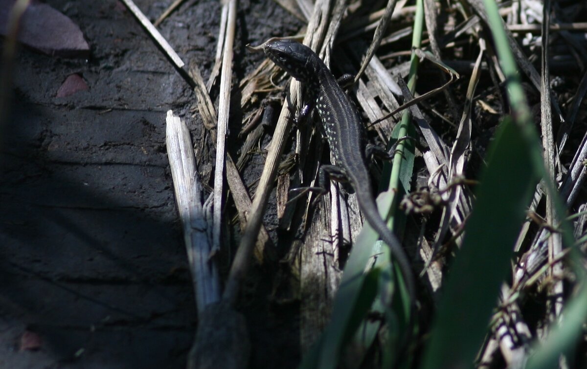 В глубину тростника ведет утоптанная охотничьим вездеходом плавневая колея. Тростник еще не полег. Птиц на воде за его сплошной стеной не рассмотреть. Там, на воде, по ту сторону тростниковой границы – тишина. Моя вылазка кажется зряшной… Но вдруг прямо под ногами – черная молния. На краю колеи замерла ящерка. Сантиметров пять-семь с хвостом. Молодая. Набирается сил перед зимовкой.