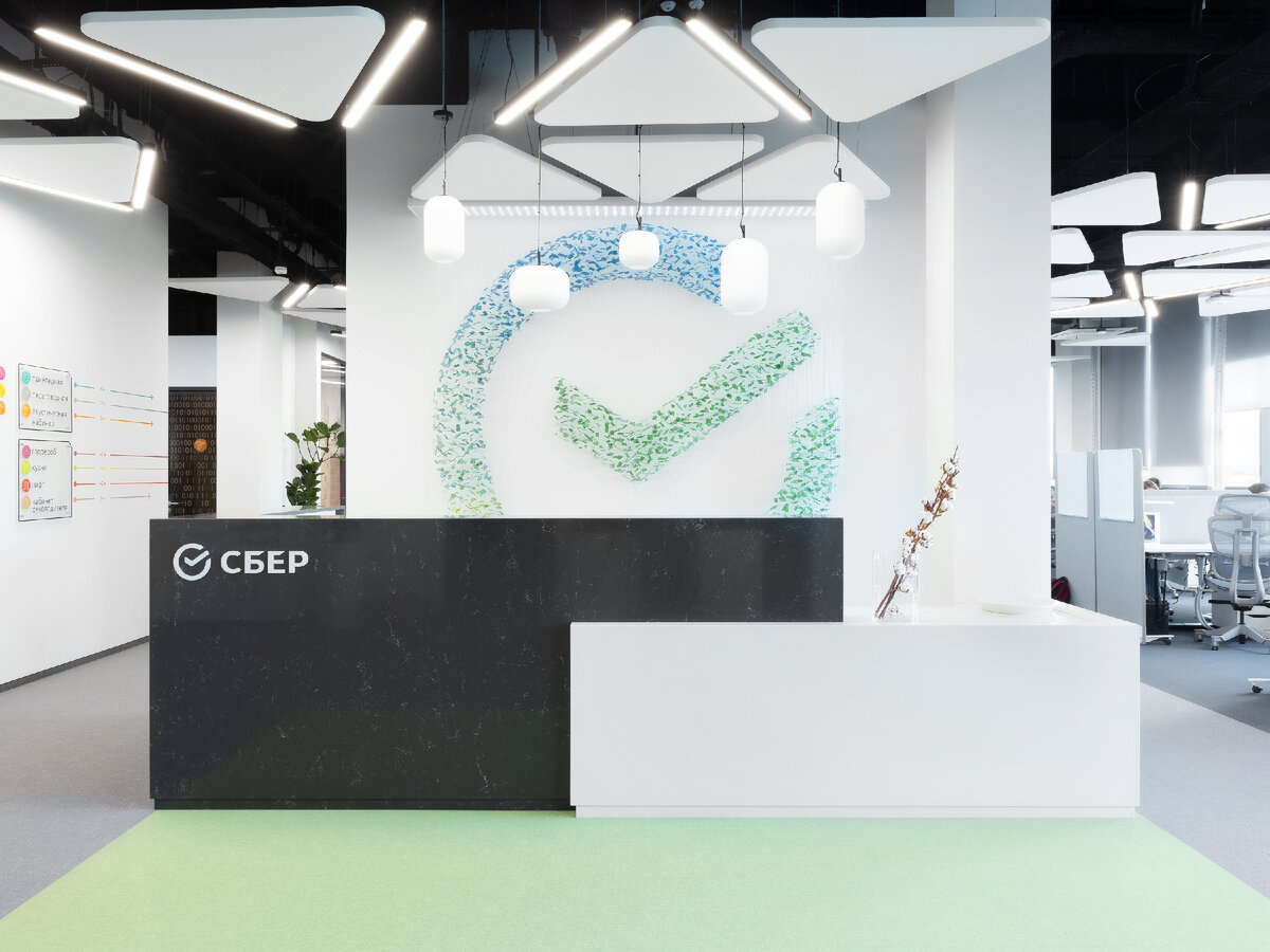 СБЕР — крупнейший резидент нового ИТ-парка — занимает площадь в 3 200 кв. м, которые Креативному агентству EVOLUTION предстояло превратить в рабочее пространство с дружелюбной средой и удобной инфраструктурой.