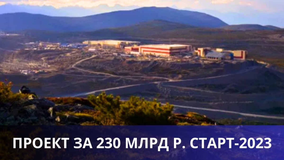 Строительство на месторождении стартовало в 2019 г. Условия сложные: объект находится в зоне вечной мерзлоты, на отметке 1600 м над уровнем моря. Объём инвестиций уже к сегодняшнему дню составил в 230 млрд рублей (примерно как стоимость Крымского моста). Проект финансируется ВЭБ.РФ совместно с двумя коммерческими банками — Сбером и Газпромбанком. Предполагается две очереди: первая включает в себя запуск двух линий измельчения, вторая (в 2028 г.) — весь технологический цикл.