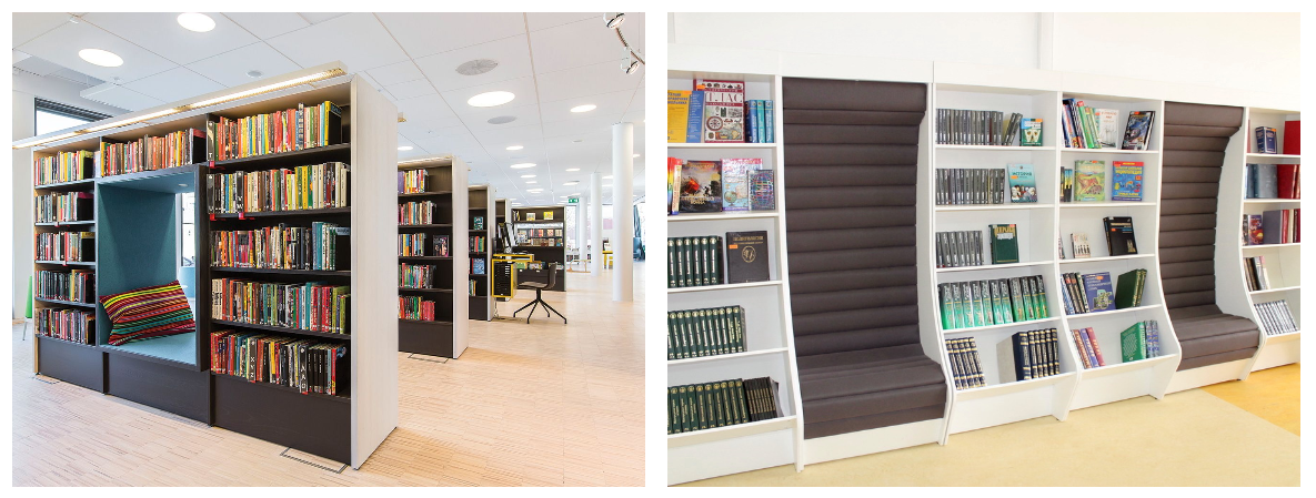 Стеллажи и подиумы с посадочными местами: для школ, библиотек, коворкингов