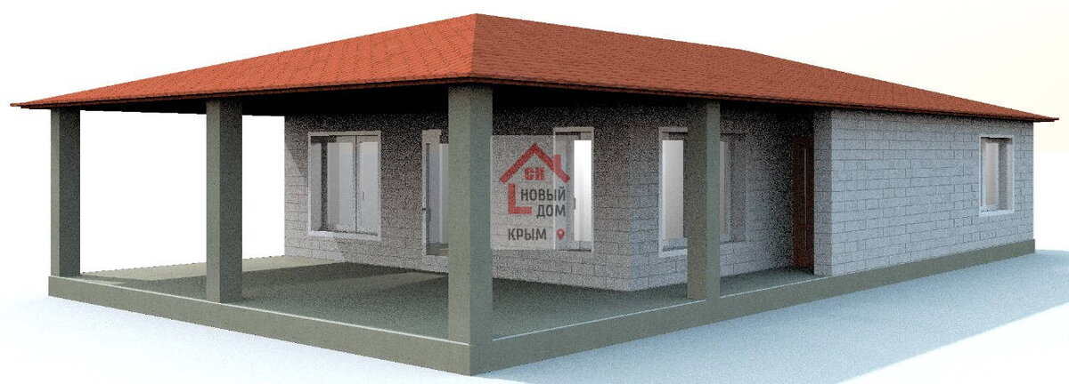Индивидуальный проект по эскизу заказчика одноэтажного дома с террасой при входе, общая площадь 111 м.кв, размеры 9 на 16 метров, с тремя спальными комнатами. Комплектация строительства "теплый контур" - с фасадом, окнами и входной дверью. Фундамент ленточный. Кровля мягкая черепица четырехскатная. Цена строительства: Каждую неделю новые проекты с актуальными ценами строительства - Подписаться на канал Наши 300+ проектов с ценами - В каталог