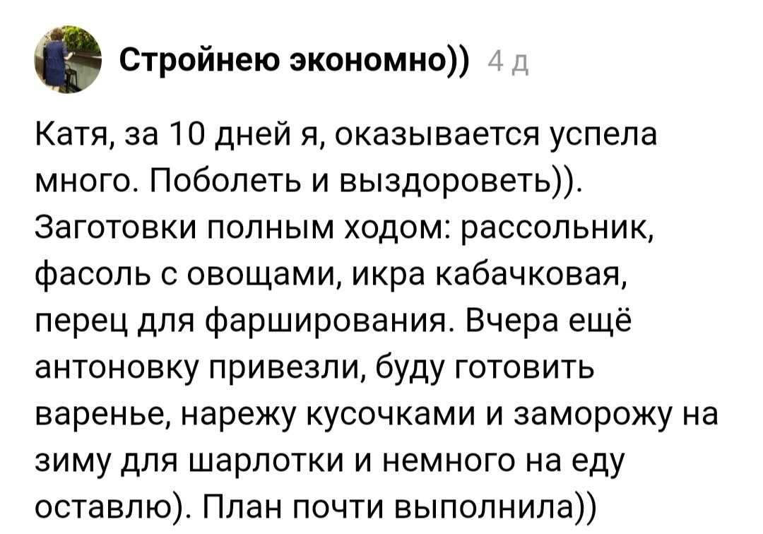Спасибо всем, кто поделился своими результатами за первую декаду сентября: Я рада, что у нас получилось начать движение к своим целям. В начале всегда тяжело, потом войдём в колею😄 Всем отличного настроения и огромного здоровья! Сейчас сезон такой, все вокруг болеют. Я тоже пару дней назад горло полоскала и нос промывала при первых признаках, чтоб не разболеться! Спасибо, что вы со мной! ♥️