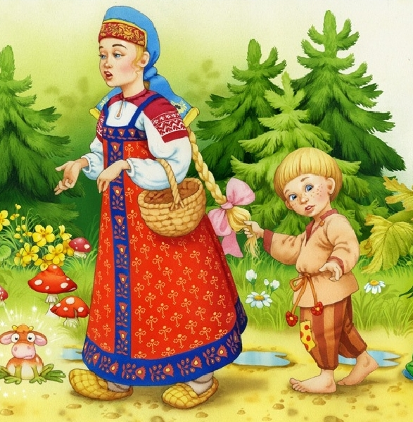 Сестрица Аленушка и братец Иванушка шли по лесу. Их маменька приболела немножко и послала детей к старушке-травнице, одиноко живущей в лесу. Бабку, по традиции, называли Бабой Ягой. На самом деле, это была милая старая женщина и ничего общего с той, канонической, Бабой Ягой не имела. Варила лекарственные зелья для окрестного люда и тем жила. У Аленушки с собой был узелок с пирожками и пара монеток, завернутых в тряпицу, в уплату за лекарство. Откуда у деревенских деньги? Народ жил с огорода, да скотинка, какая у кого была. День был жаркий и скоро братец Иванушка стал жаловаться: - Сестрица, я пить хочу. - Погоди сейчас придем к бабке, там напьешься, - отвечала Аленушка. - Сестрица, пить хочу, не дойду я. По дороге им попалась лужица. Вода с виду чистая, только в середине отпечаток козлиного копыта. - Аленушка, я напьюсь. - Не пей, Иванушка, козленочком станешь. Но мальчик уже не слушал, опустился на колени и жадно напился воды из лужи. И тут... ничего не случилось. - Ну вот, сеструха,