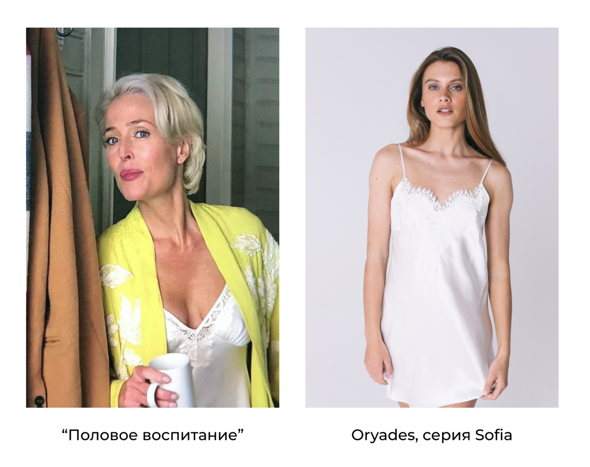 Соблазнительная, как Джин Милберн Мама главного героя сериала «Половое воспитание» — опытный сексолог и успешная женщина. Она хорошо знает себя, знает, чего хочет от партнера, и ее уверенность в себе — яркая, соблазнительная приманка для мужчин. Чтобы показать соблазнительность и острый ум Джин, костюмеры подбирают для нее женственные, в меру строгие костюмы, а дома она носит яркие пеньюары и халаты, соблазнительные шелковые сорочки и пижамы. Если вам близок характер Джин, выбирайте сорочки и пеньюары из коллекции Sofia от бренда Oryades. Многогранная, как Уэнсдей Аддамс Мрачная, но очень умная и талантливая девочка из специфической семейки покоряет своим кругозором, образованностью и целеустремленностью. Уэнсдей носит одежду исключительно черно-белого цвета, ценит рациональность и презирает людей за то, что чувства часто затмевают их разум. Однако, к концу сезона обнаруживает, что и ей не чужды дружба и любовь. Возможно именно поэтому в одном из эпизодов сериала «Уэнсдей», где мы вид