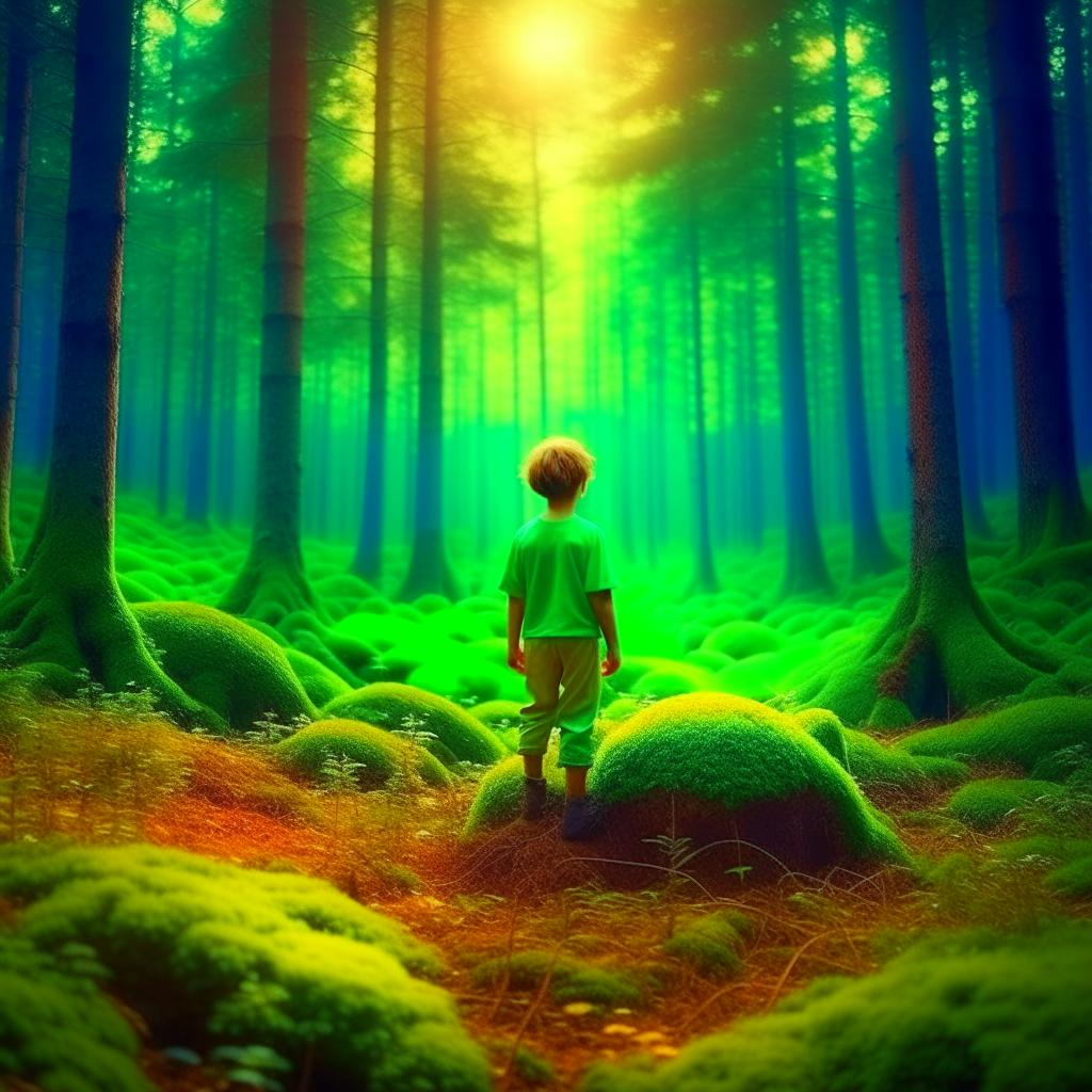 В тихом и спокойном городке жил-был мальчик по имени Макс. Он был любознательным и всегда стремился разыскать новые приключения и загадки. Однажды, когда Макс гулял в лесу, он увидел нечто абсолютно удивительное. Вдалеке, среди деревьев, светилась загадочная зеленая планета. Мальчик был ошеломлен этим открытием и не мог оторвать глаз от этого неземного зрелища. Его сердце забилось быстрее, а воображение начало создавать самые фантастические сценарии. Осторожно ступив на траву, Макс ближе подошел к этому необыкновенному явлению. Приближаясь все больше и больше, он чувствовал тайну этой планеты притягивающей его как магнит. Когда мальчик достиг края леса, перед ним появилась сказочная земля изумительной красоты и волшебства. Цветы сверкали всеми цветами радуги, а деревья обладали хрустальной листвой. Воздух был проникнут чарующим ароматом, а пение птиц создавало невероятную гармонию. Макс не мог поверить своим глазам - он нашел вход в сказку! Его сердце наполнилось радостью и оживленнос
