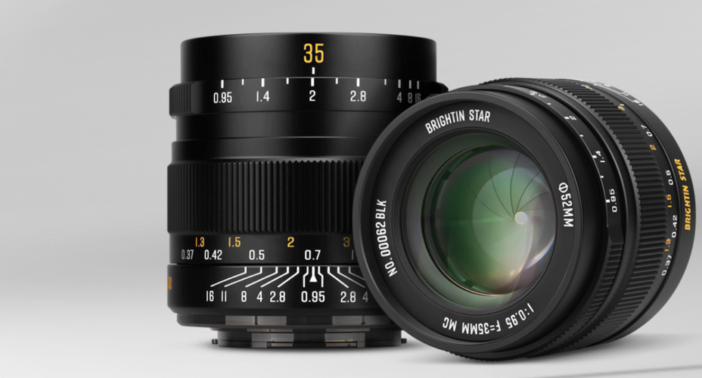 Brightin Star 35mm f/0.95 формата APS-C – это широкоугольный объектив с фиксированным фокусным расстоянием для байонетов Sony E, Nikon Z, Fujifilm X, MFT, Canon EF-M/RF, и Leica L (эквивалентное фокусное расстояние для Sony E, Nikon Z, Fujifilm X, Leica L – 52.5mm, для Canon EF-M/RF – 56mm, для MFT – 70mm.)
