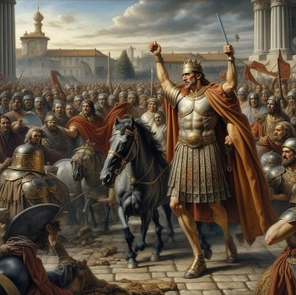 Флавий Валерий Аврелий Константин родился 27 февраля 272 года, в Илирии, в Наиссе, небольшом городе на территории нынешней Сербии. Он был сыном цезаря Констанция Хлора, одного из правителей империи, и дочери владельца постоялого двора в провинции Вифинии Елены. Сожительство вне брака мужчины и женщины разного общественного положения называлось в Риме конкубинатом. Дети не считались законнорождёнными, но имели право наследования. В средневековой Европе Константин был бы бастардом. Константин начал свою политическую карьеру как офицер в армии своего отца. И быстро продвигался по службе. Самая знаменитая легенде о Константине связана с битвой при Мулвиевом мосту в 312 году. Во сне перед битвой Константин увидел в небе образ креста с надписью "In hoc signo vinces"- "Имея этот знак, победишь". На следующий день он одержал победу в битве. Войска его соперника Максенция обратились в бегство. Сам Максенций при этом утонул в Тибре. Но был выловлен из реки и обезглавлен. 28 октября 312 года Конс