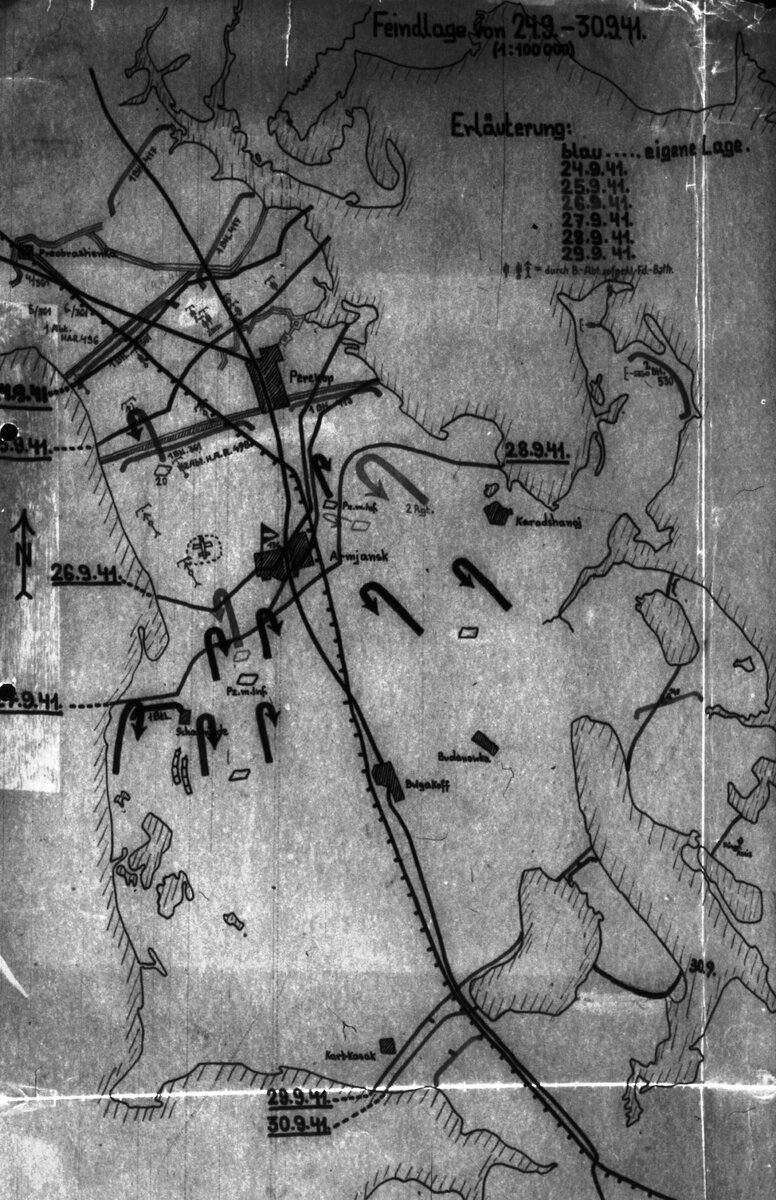 Из немецкого допроса пленных (46ПД) «…Укрепление местности: По опросам пленных строительство дотов из-за нехватки времени не производилось. Позиции имеют только укрепления полевого типа. Проволочное заграждение проходит по линии высота 21,9-Бромзавод- солевые бурты и перед Ишунью. Расположение мин неизвестно. Известно, что перед Ишунью находится минное поле. Восточнее бромзавода вкопаны танки.