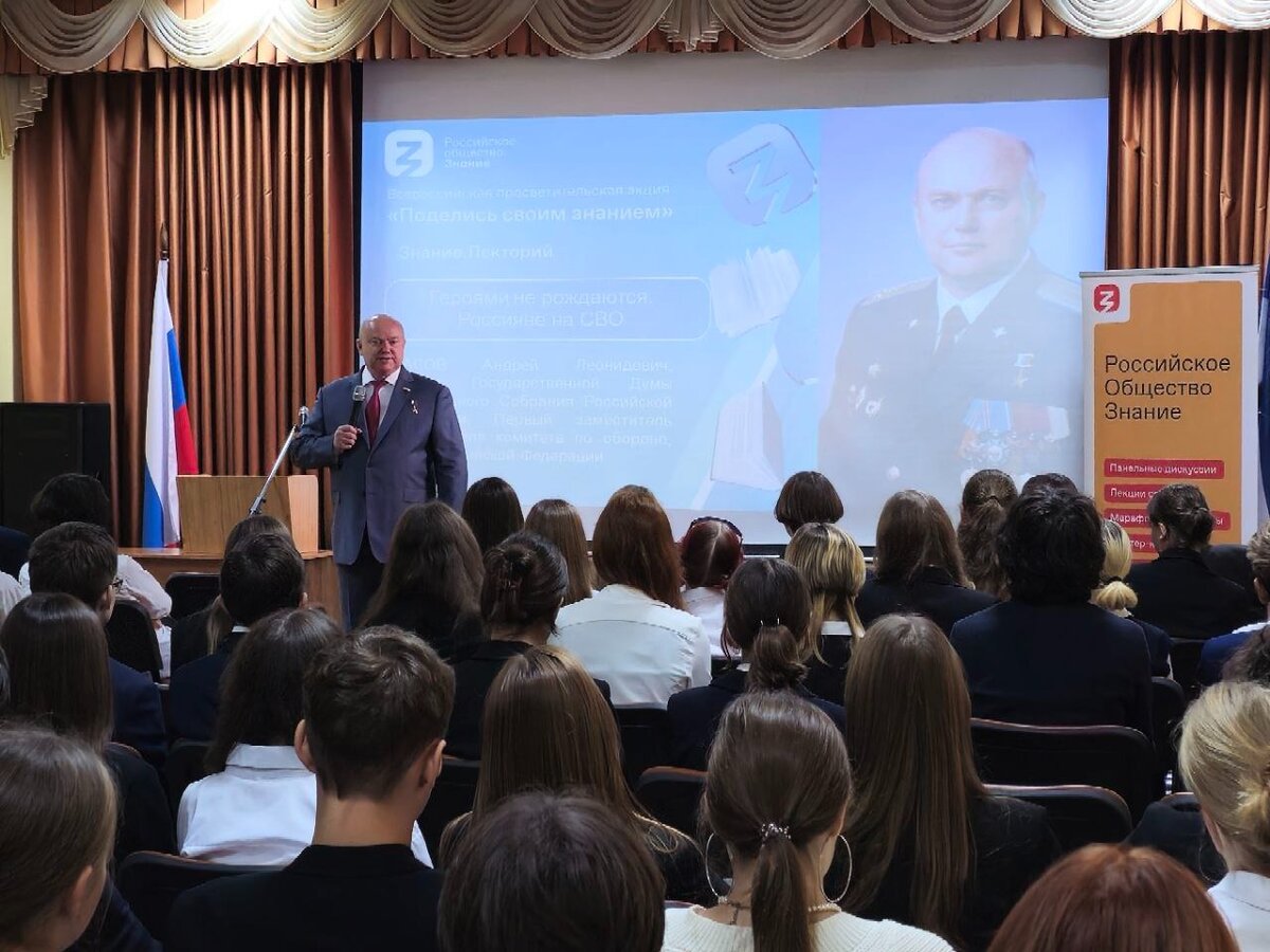 Депутат Государственной Думы Федерального Собрания Российской Федерации от Рязанской области, Первый заместитель председателя комитета по обороне, Герой Российской Федерации Андрей Красов провел урок на тему «Героями не рождаются. Россияне на СВО» для старшеклассников Ордена «Знак Почета» гимназии № 2 имени И.П. Павлова в рамках Всероссийской просветительской акции «Поделись своим Знанием». Затем депутат пообщался с воспитанниками школы №76 имени Н.Н. Чумаковой на тему «За что сегодня борется Россия? Разговор с героем». Акция проходит в рамках трека Знание.Лекторий Российского общества «Знание» при поддержке Министерства просвещения РФ, Министерства науки и высшего образования РФ, Министерства культуры РФ. Учащиеся рязанских школ вместе с Героем Российской Федерации давали определение понятию человеческого и воинского подвига, приводили примеры героических поступков своих родных и близких в разные периоды истории нашей страны. Ребята живо интересовались историей и сутью современного ко