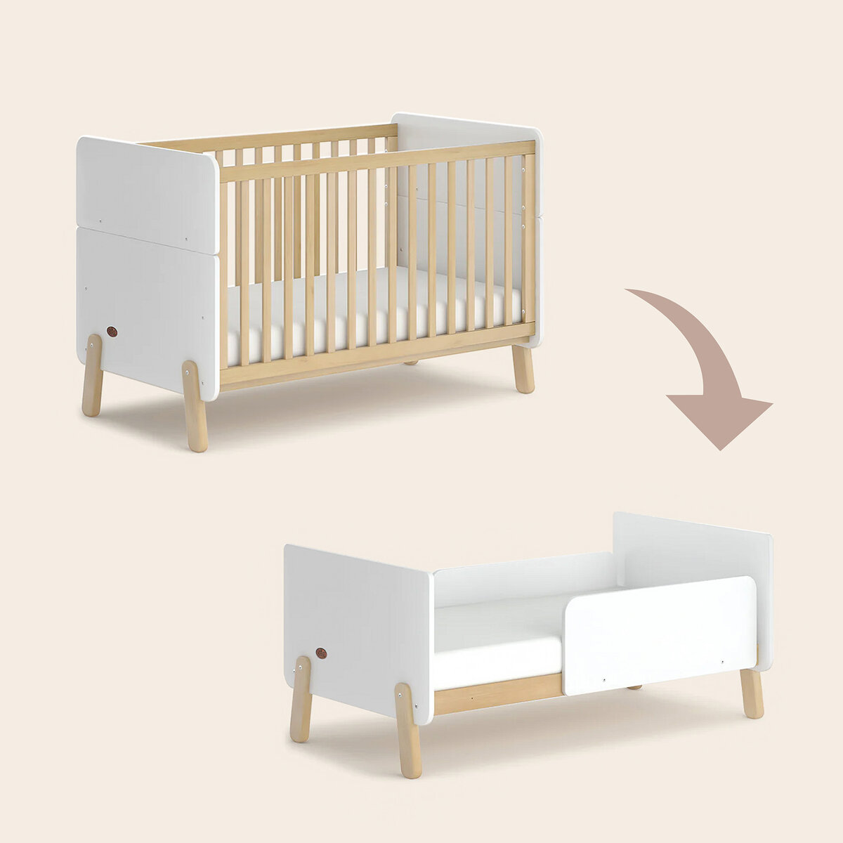 Детская кроватка Natty - это не просто кровать для новорождённых. Она может расти вместе с ребёнком и трансформируется в кровать для подросшего малыша. Но это ещё не все её преимущества. Кроватка модная и современная Она прекрасно впишется в любой, даже самый изысканный интерьер. У неё закруглённые углы и скошенные ножки, она не только создана из безопасных для младенцев, натуральных материалов, но и сама конструкция полностью соответствует международным стандартам. Кроватка имеет две высоты основания - для младенцев и подросших малышей, которые уже могут вставать. Позже, Natty можно превратить в кроватку для подросшего ребёнка, с двумя защищенными сторонами, используя детали торцевых панелей самой кроватки. Удобно то, что для неё не требуется покупка отдельного комплекта трансформации. Изначально, большие размеры кроватки, подразумевают её длительный срок службы - натуральная австралийская древесина, из которой она создана, способствует этому. Мебель Boori проектирует дизайн-студия