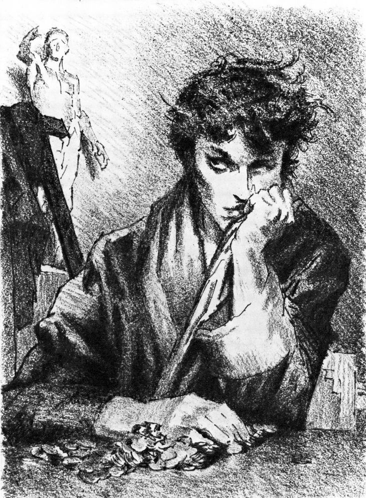 - Художник Б. – сын художника, который написал портрет ростовщика, рассказчик во второй части.