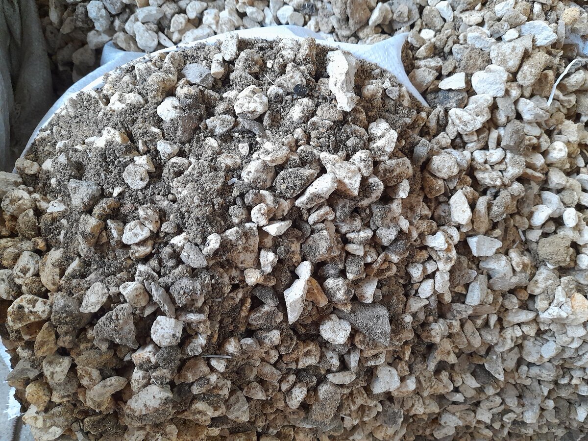 На участке у нас красота и порядок, а в новом строящемся доме полный бардак. Хорошо, что из сада всего этого не видно. Здесь и металл, который собирает муж. Щебень, оставшийся от заливки армопояса, тоже принесли сюда. Он был в армированных мешках. Через пару месяцев мешки сгнили и щебень частично оказался на полу. Кроме вышеперечисленного здесь покоились поддоны от газобетонных блоков, строительные ведра, куски утеплителя и другой строительный мусор. Строительство дома подходит к концу и уже понятно, что нам пригодится, а что нет. Щебень в строительстве использовать уже не будем, но он нужен на огороде. За четыре сезона дорожки между грядками уплотнились и кое-где торчит укрывной материал. В крайний раз щебень мы купили с примесью глины. Еще он перемешался с лежавшим рядом песком. В таком виде рассыпать его между грядок было нельзя. Пришлось все пересевать. Пока муж с сыном занимались строительством, взяли мы с дочкой по фруктовому ящику и перелопатили 10 мешков щебня. Относительно