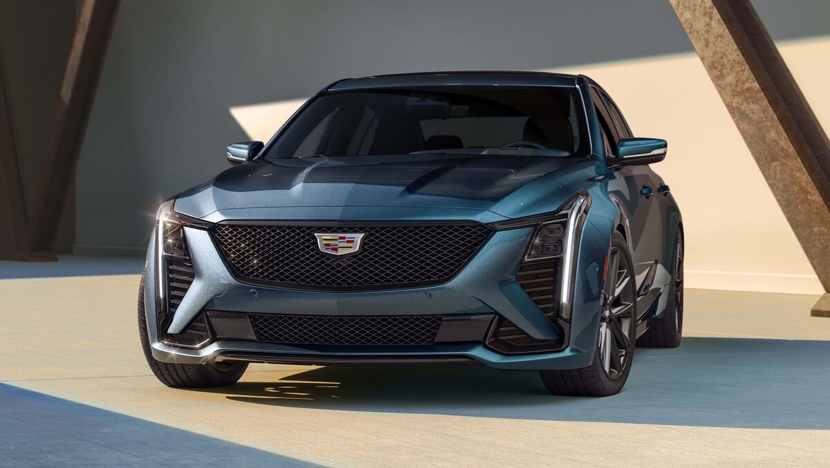 Cadillac стремится к будущему, основанному на электрических SUV, представив в прошлом месяце Escalade iQ. Внедорожник должен присоединиться к Lyriq EV в дилерских центрах следующим летом. При этом компания все еще обновляет свой олдскульный бензиновый седан CT5 перед его вероятной кончиной. Презентованный на автосалоне в Детройте, CT5 2025 года выпуска отличается свежим внешним видом и более современным интерьером, где важную роль играет массивный 33-дюймовый экран. Свежий облик CT5 теперь соответствует недавно обновленному XT4, самому маленькому кроссоверу марки Cadillac. Скошенные горизонтальные фары соединены с вертикальными светодиодными элементами. Корпус основной фары расположен в изгибе этих двух светодиодных лент и соединяется с вентиляционным отверстием внизу, образуя треугольный вырез в кузове. На спортивных версиях CT5 отделка затемнена, а решетка радиатора обтянута черной сеткой. Палитра 2025 года пополнится двумя новыми цветами: Deep Space Metallic и Typhoon Metallic. Само