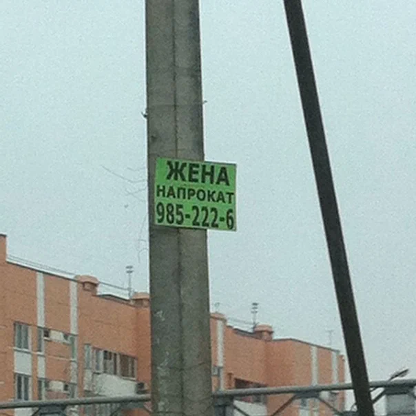 Вот как воспринимать данное объявление без улыбки?!) Сразу посещают весёлые мысли и про жену, и про чудака - мужа, которому пришел в голову такой креатив). Хотя когда я был холостяком задавался вопросом, почему служба "муж на час" существует, а "жена на час" отсутствует. Но оказалось, что был неправ, такая услуга существует и я сразу же туда позвонил. Когда мне озвучили сумму за уборку моей холостяцкой берлоги, то показалось, что ослышался... Осторожно переспросил и убедился, что не ослышался. Тогда спросил, что возможно сюда входят и еще какие-либо услуги, втайне надеясь на что-то...но увы и ах, не входит, только уборка согласно прейскуранту). Пришлось уборку делать самому... Но это лирическое отступление и вернёмся к нашей теме загадочных объявлений: Тоже загадочное объявление и человеку, лишенного чувства юмора, довольно трудно будет принять искренние неудобства за временные извинения) \\\\\\\\\\\\\\\\\\\\\\\\\ Загадочного ничего здесь нет, просто прямой, откровенный вопрос. Да у