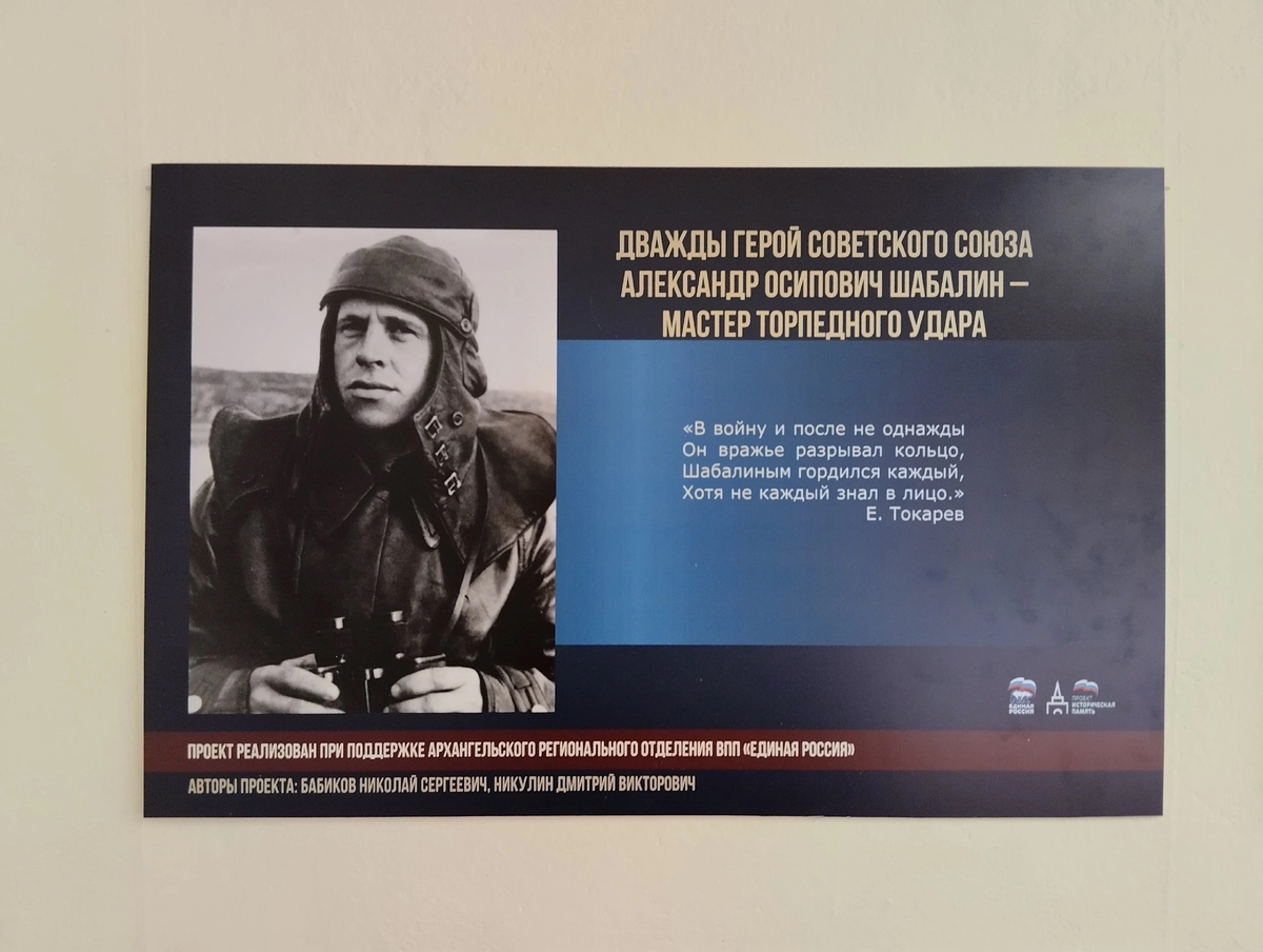В Онежском музее открылась передвижная планшетная выставка «Дважды Герой Советского Союза Александр Осипович Шабалин – мастер торпедного удара». Сегодня молодому поколению особенно важно понимать ценность и мотивы героических поступков людей, защищающих Родину. В следующем году будет отмечаться 110-летие со дня рождения нашего земляка А.О. Шабалина, контр-адмирала, чьи подвиги нужно помнить, чтить и гордиться. Планируется, что выставка посетит практически все населенные пункты Онежского района. В перспективе – другие районы Архангельской области и регионы России. Авторами проекта являются сотрудники Онежского музея – Бабиков Николай Сергеевич и Никулин Дмитрий Викторович. Проект реализован при поддержке Архангельского регионального отделения ВПП «Единая Россия» в рамках федерального партийного проекта «Историческая память». #ЕР #РаботаДепутата #историческаяпамять