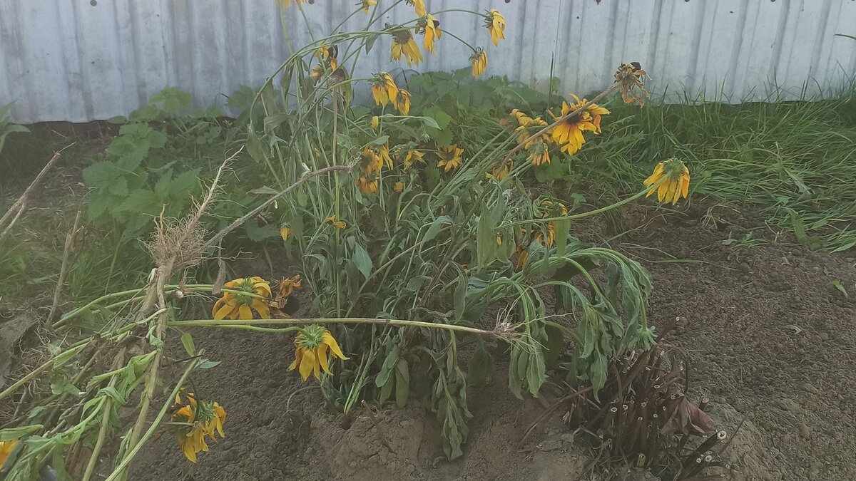 Чем старше становится цветовод, тем больше его питомцев отправляется за забор, а может и в компост. Вот и я всё дальше и дальше переселяю свою Рудбекию от общего цветника к забору "на Камчатку". Когда-то я пела восторженные песни в её честь. Вот здесь можно почитать. Ко всем цветам, которые выращиваются из семян самими цветоводом особое отношение. Пережив процесс ожидания и восторга, что взошло, выросло и расцвело, трудно уже разлюбить. Вот и носишься с ним, как трудным ребенком. Тем более, если деточка получилась рослая и красивая. Ну очень красивая. Золотая моя рудбекия жила бы со мной долго и счастливо, если бы не её строптивый самосев. Сажаешь ее в одно место, а она вырастает в самом неожиданном. Превратив весь цветник в какой-то бедлам. Ветки длинные, шершавые. Какие-то сохнут, какие-то только выросли. Бесконечный процесс. Переплела все, утрамбовала. Ничего не разобрать. Пришлось выселить эту буйную захватчицу из комфортных условий к забору, где ей придется усмирять свой пы