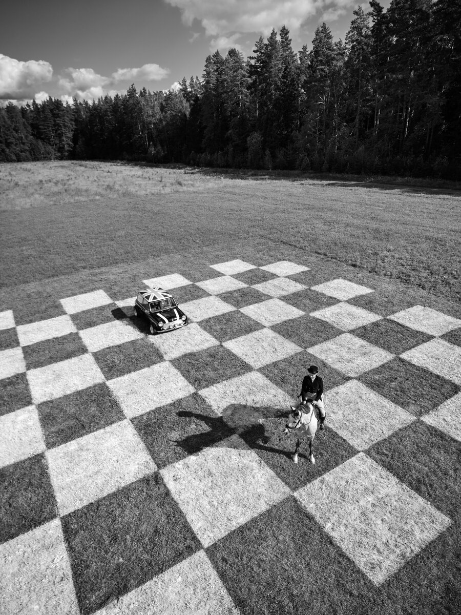 Удивительно, но эта съёмка Rover Mini с лошадьми на шахматном поле (sic!!!) родилась из простой фразы «есть тут одна машина, которую надо бы поснимать»