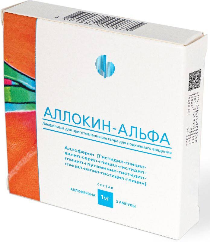 Действующее вещество препарата — аллоферон, смесь аминокислот (гистидил-глицил-валил-серил-глицил-гистидил-глицил-глутаминил-гистидил-глицил-валил-гистидил-глицин)