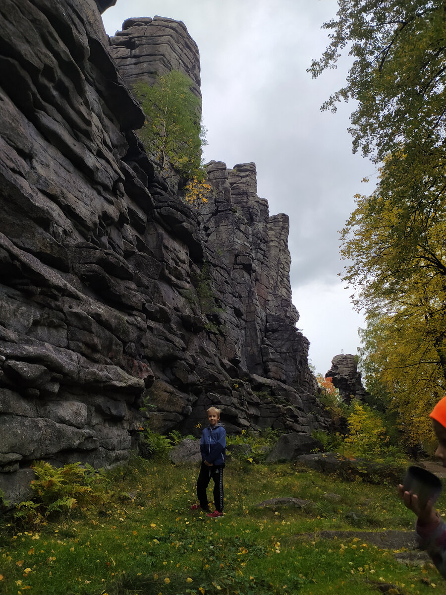 Осень 🍂. Поймала себя на мысли, что осень- лучшее время для походов на Урале. Весной мокро и клещи просыпаются, летом погода часто непредсказуемая, жарко и опять же клещи. А вот осень - чудесное время. Правда в этот раз немного подмочил дождь, но это не страшно, зато быстрее дошли до машины. В эти выходные ездили на скалы "7 братьев" и узнали, что рядом с ними ещё и сестра есть. А чуть дальше ещё три сестры, но к ним мы уже не ходили. Изначально я смотрела маршрут через Яндекс карты и он рисовал по Серовскому тракту, разворот в районе оз. Таватуй и дальше дорога по лесу или пешком. Неизвестность немного напрягала. Не понятно было какая там дорога и сможем ли мы сколько то проехать, а если не сможем, то пешком далеко. И хорошо, что муж стал изучать этот вопрос и увидел, что нужно поехать на Верх-Нейвинский, там на дороге стоит указатель "7 братьев", проехать вдоль садов и у небольшого водоёма в тупике оставить машину. На парковке есть указатель куда двигаться дальше. И идти оттуда п