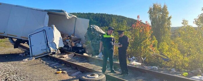 В Свердловской области тепловоз на полном ходу сбил грузовик на ж/д путях